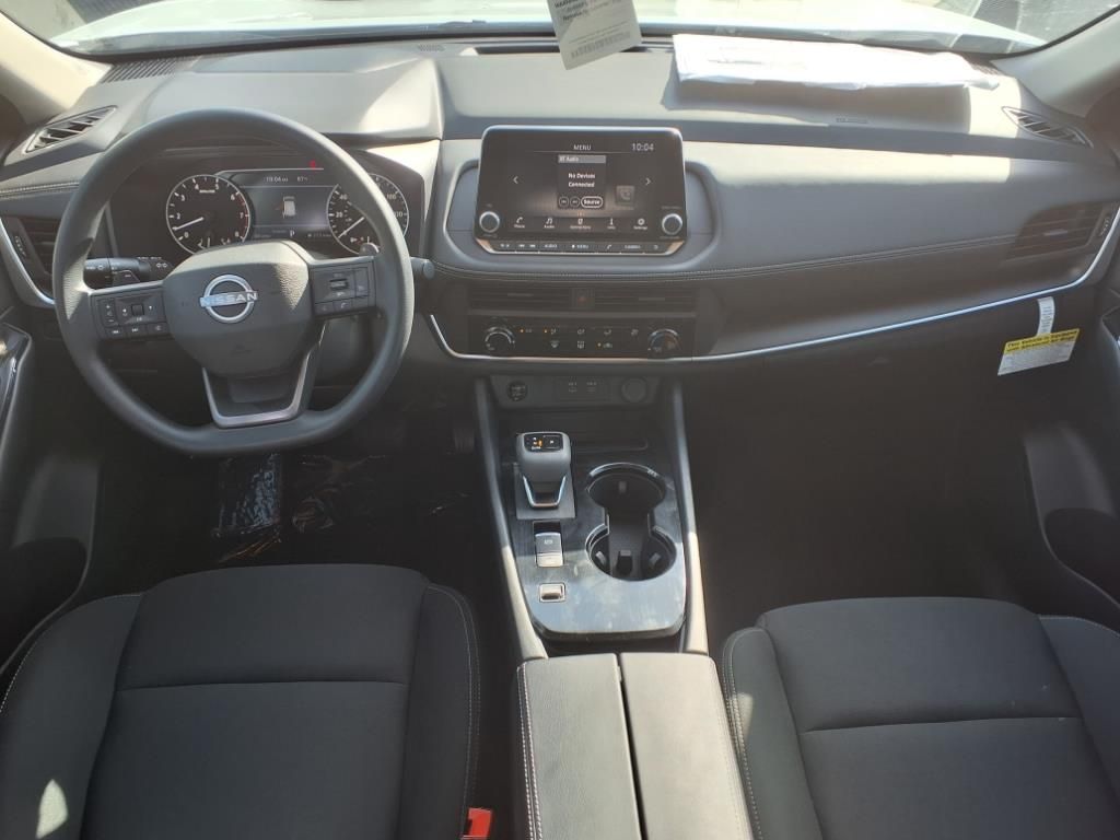 Everest White Pearl 2025 Nissan Rogue S FWD 1.5L DOHC Air Conditioning, Power steering, Rear window defroster.